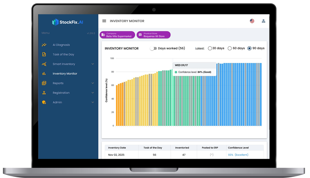 Experience a dramatic increase in inventory confidence in just a few weeks. Most of our users go from 80% to over 95% reliability after 30 days of daily audits and adjustments.